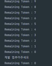 사용한 메서드는 tryConsum(long)메서드로, 입력 받은 숫자 갯수만큼의 토큰을 사용한다.
