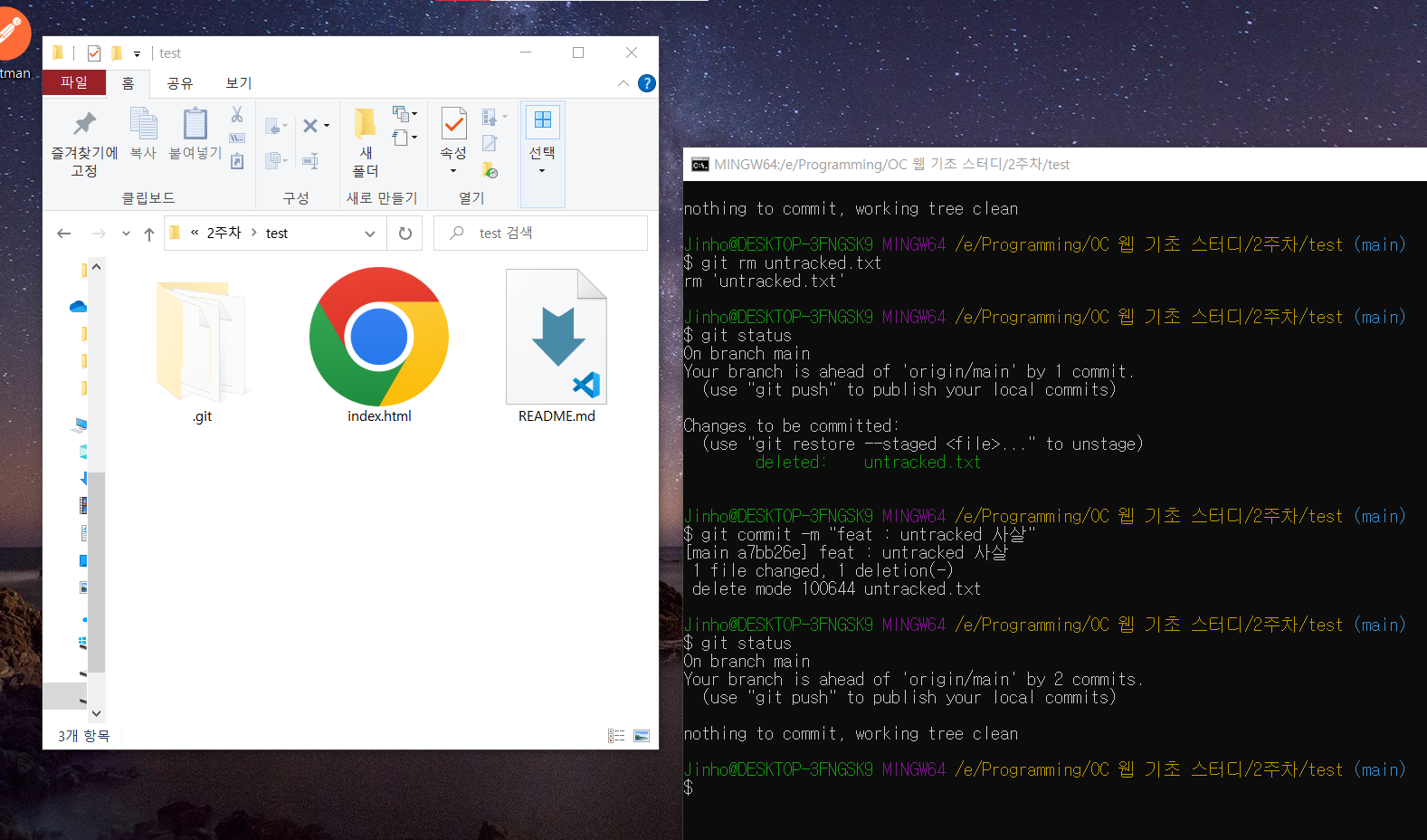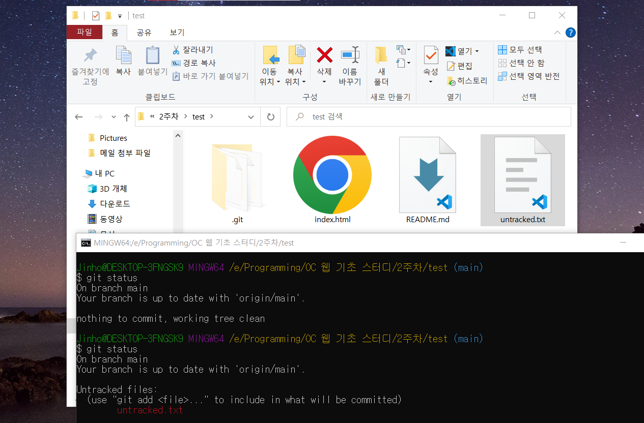 5. 정상적을 Untracked fIles에 표시되면서도 실제론 지워지지 않았다!