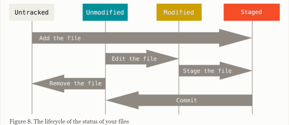위 그림은 깃이 관리하는 파일 상태의 라이프 사이클이다.