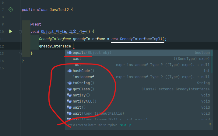 -> 상위 클래스의 메서드가 상속된다. 그리고 default method는 무시된다.
