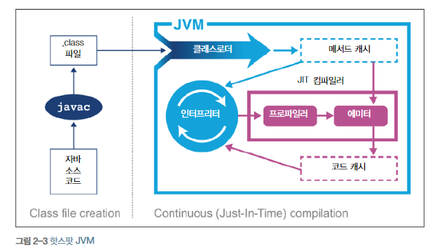 위 그림은 핫스팟 JVM의 구현 모습이다.